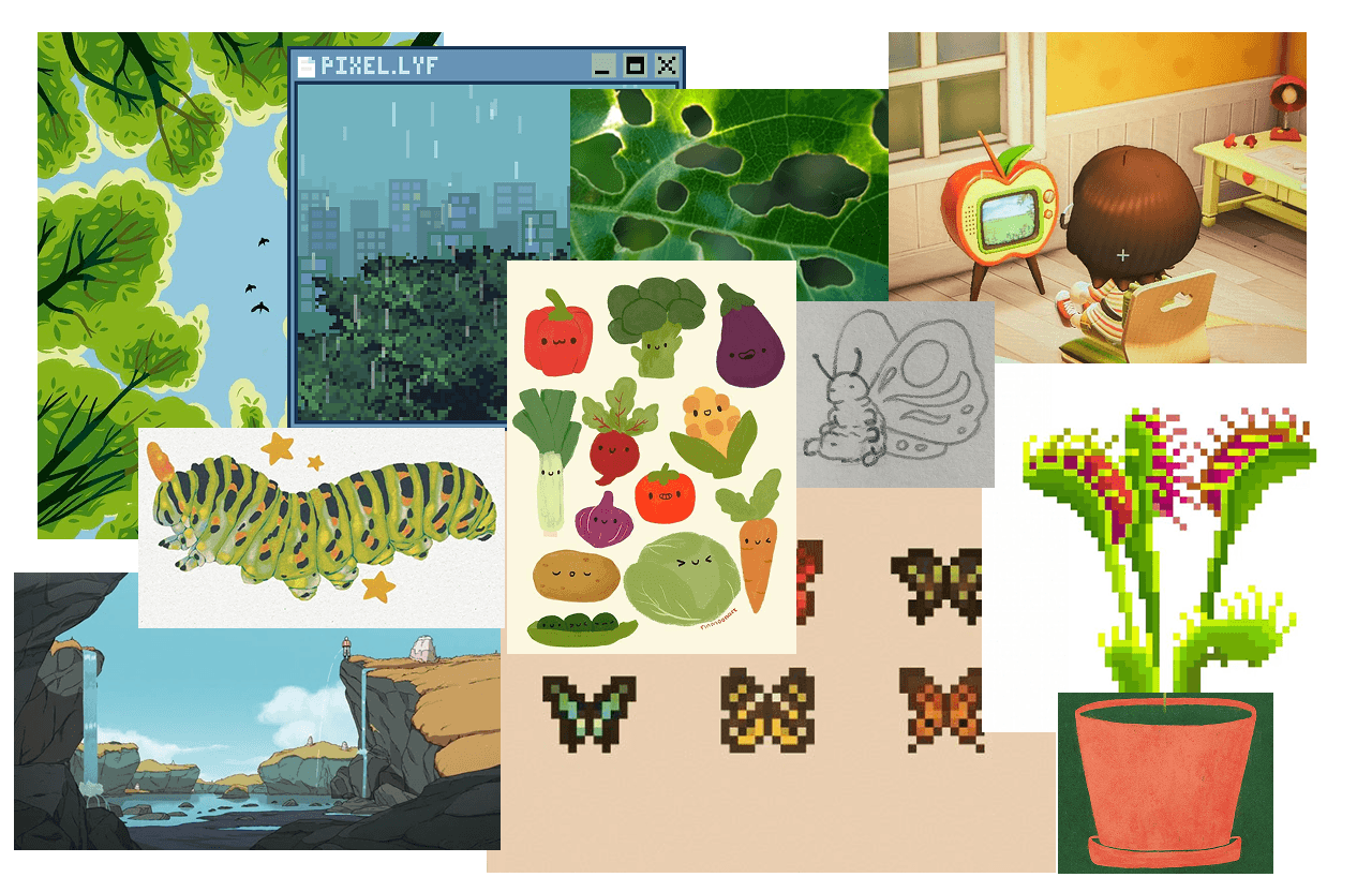 For this screen, I sketched and studied the motion of caterpillars moving and their leaf-bite patterns.